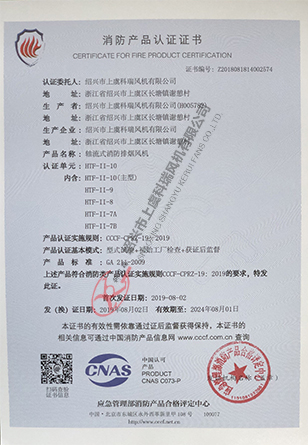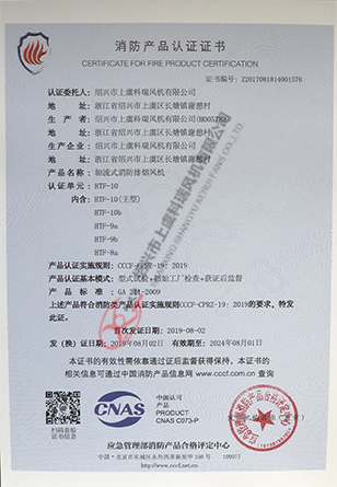 轴流式消防排烟风机 HTF10-证书