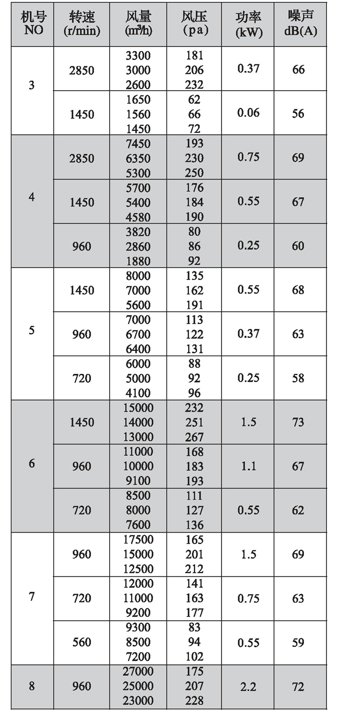 DWT-I型(轴流式)续表