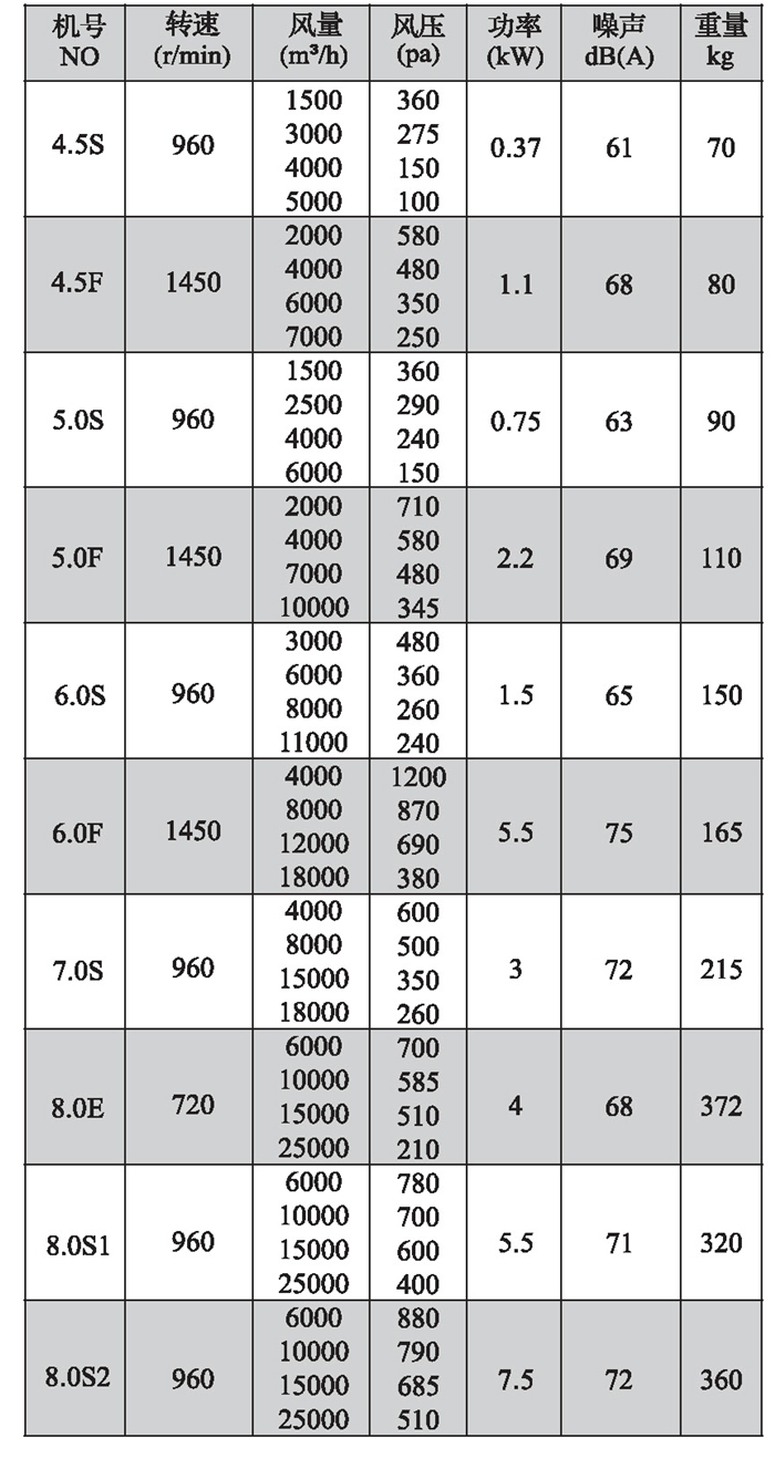 注: 1.GXF型亦可加装进出口消声器,加装方法同XSJG型,一般可消声6- 10dB(A)。