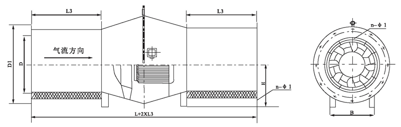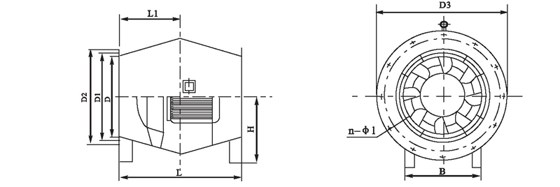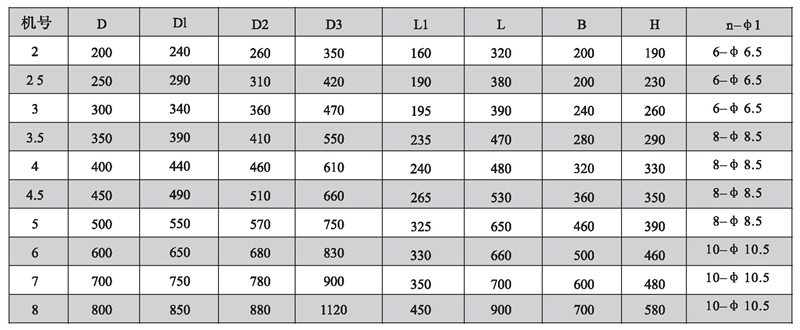 注:风机出厂时法兰一般不打孔。n-φ1仅供参考,若要打孔请用户在订货时说明.