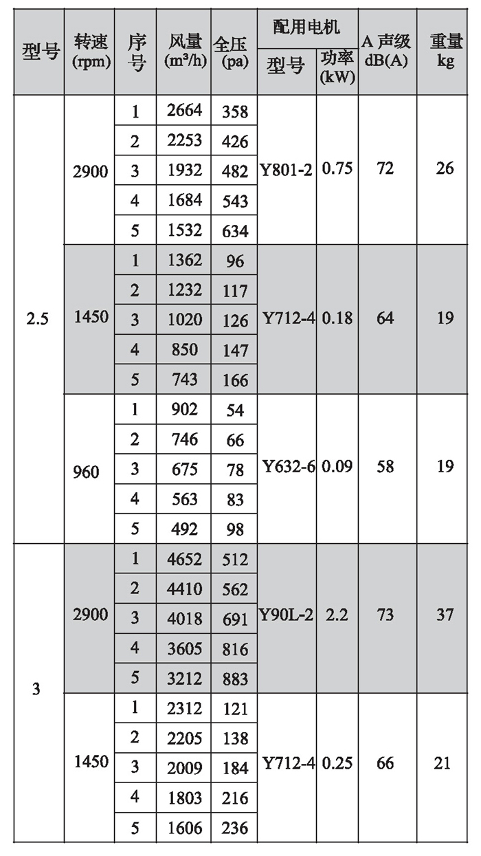 SWF-II系列混流式风机性能参数(1)