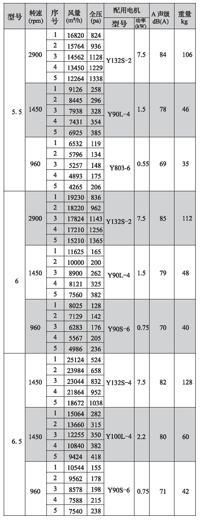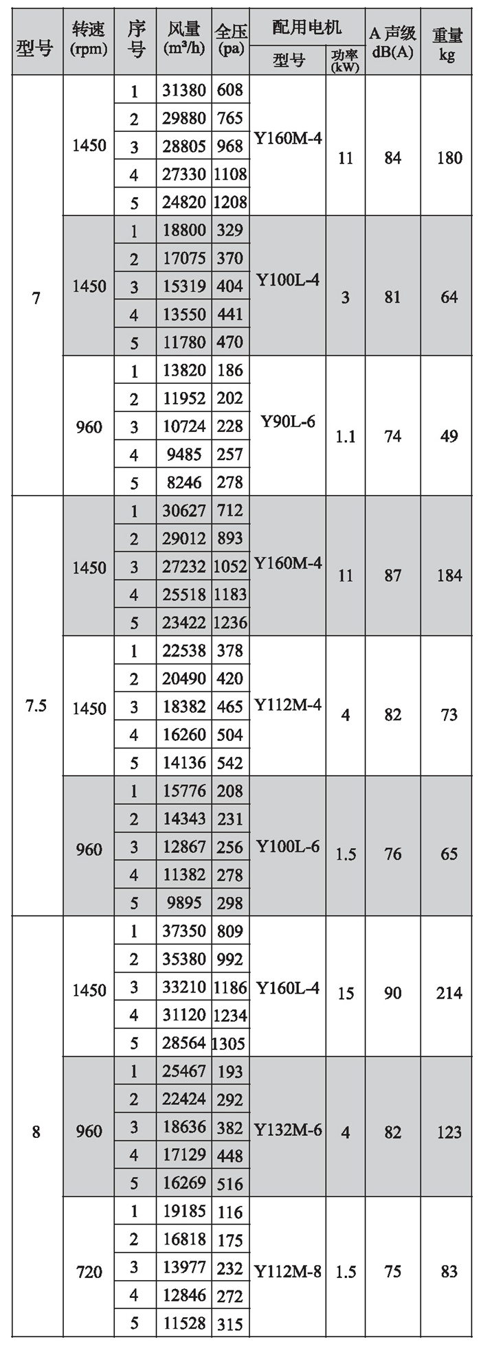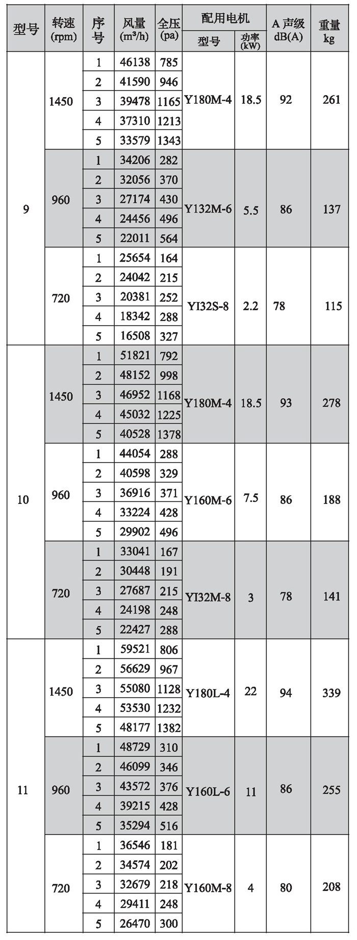 SWF-I系列混流式风机性能参数(3)