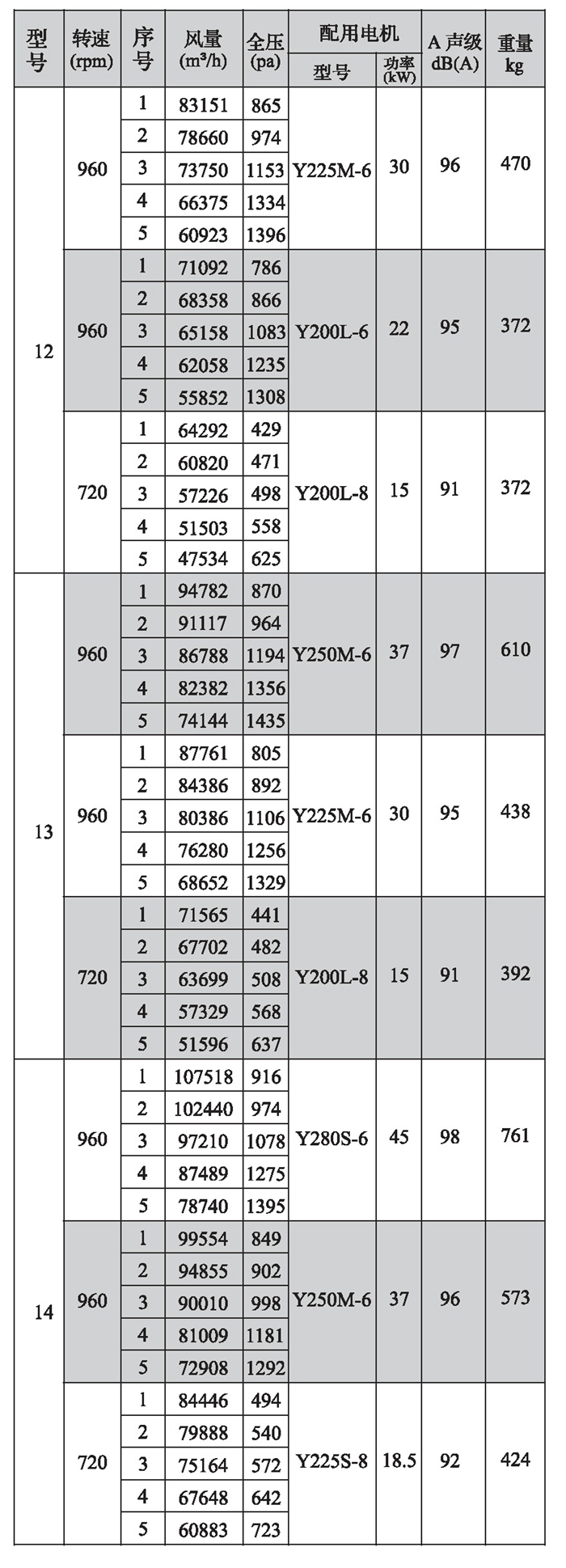 SWF-I系列混流式风机性能参数(4)