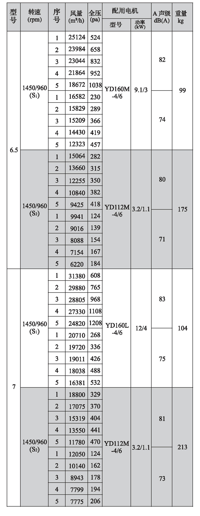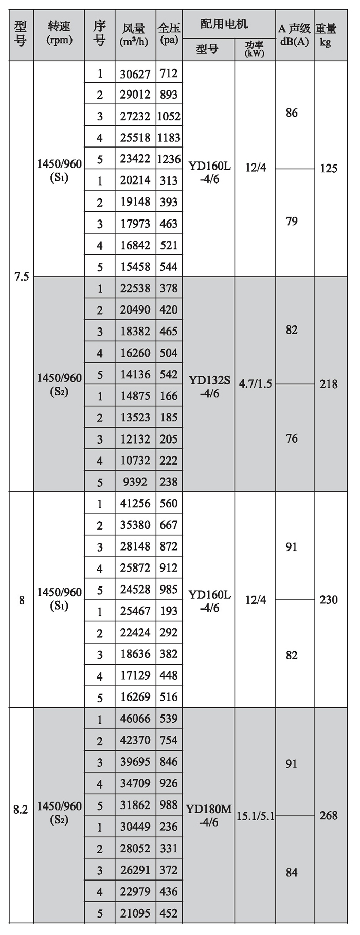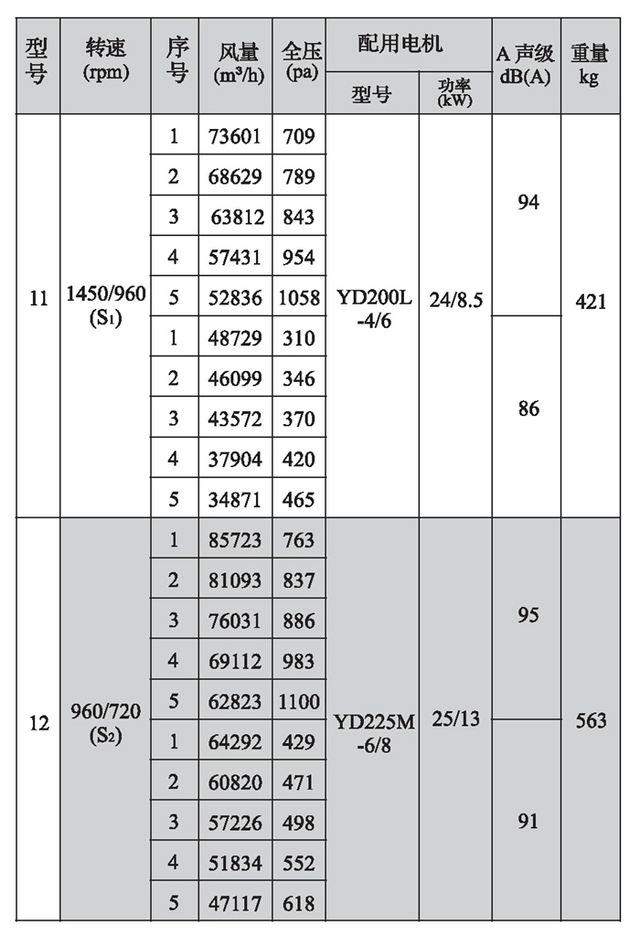 SWF-II系列混流式风机性能参数(2)