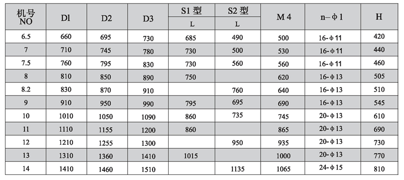 注:1、为了同用户的安装尺寸保持-致,法兰打孔尺寸(n-φ1)仅供参考,若用户没有说明,本厂一般不打孔