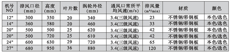 ⑥适用于工厂、仓库、大厦天台、别墅、天井、花房、禽畜养殖、矿山坑道及一切房顶的通气、换气、散气场所。