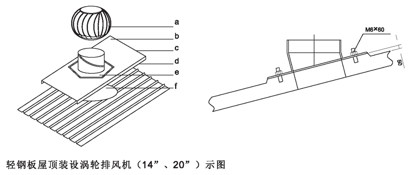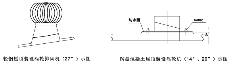 DWT-IV型(无电机)屋顶涡轮排风机屋面安装示图说明