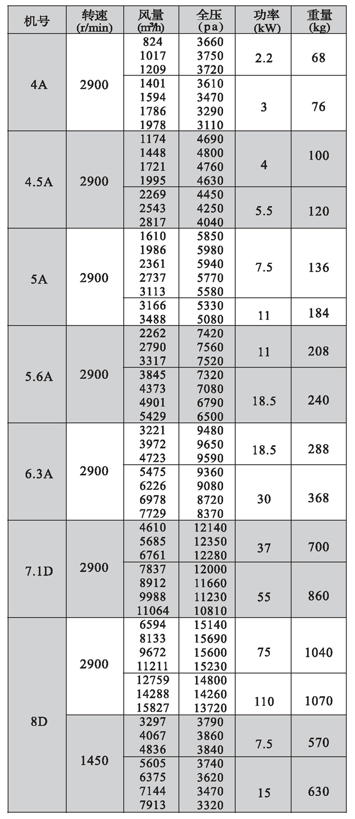 9-19离心风机性能参数表