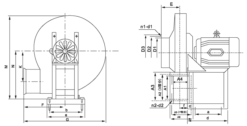 三、9-19、9-26系列离心风机外形尺寸