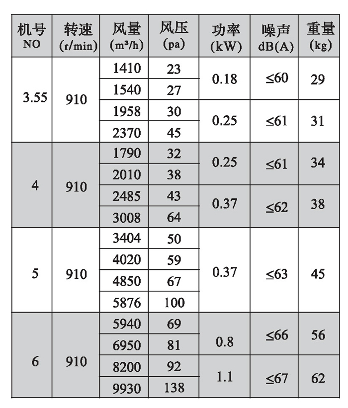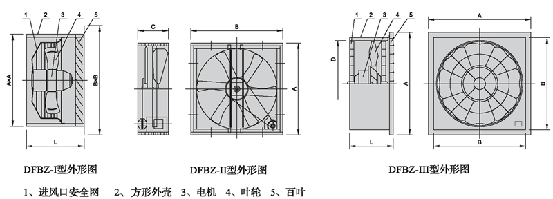 DFBZ-I型为采用内转子电机直联传动结构形式、DFBZ-Ⅱ型采用内转子电机、皮带传动结构形式,DFB-Ⅲ型为采用外转子电机直联传动结构形式??筛萦没б笾仆栏辣汀?